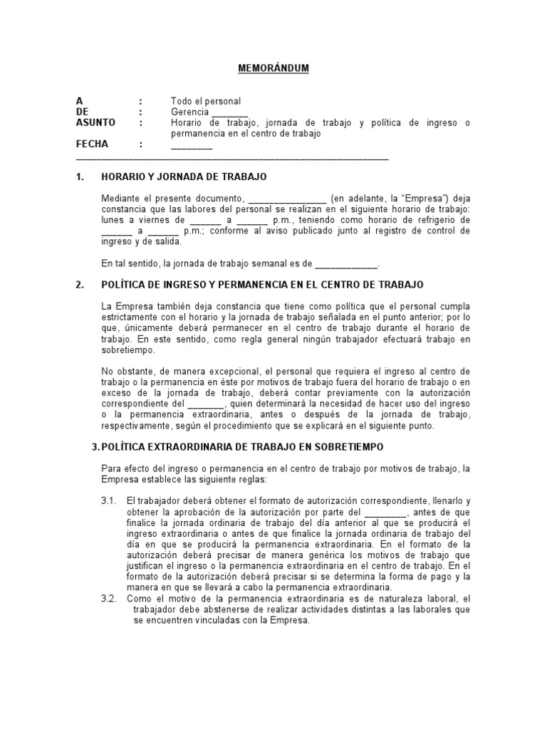 MemorÁndum Horario De Trabajo, Jornada De Trabajo Y via es.scribd.com