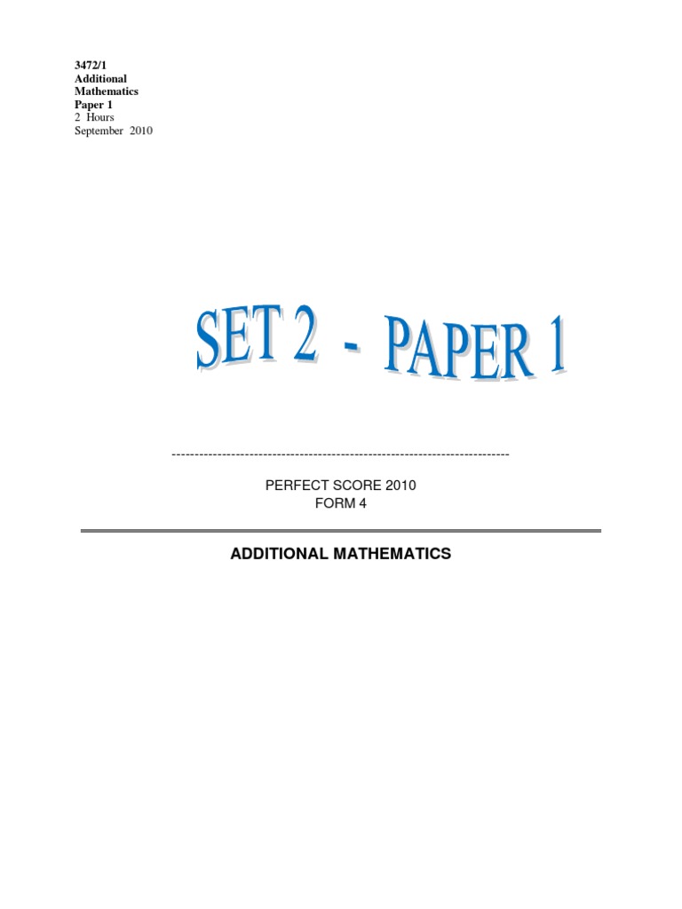 Related Posts To Contoh Soalan Add Math Form 4 Paper 1